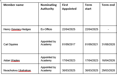 The Academy Council (AC) is a sub-committee of the Creative Education Trust Board of Directors. It is accountable to the Board of Directors and is its local presence. It may include representatives from such groups as the school community, the local community and other local organisations and businesses as appropriate.